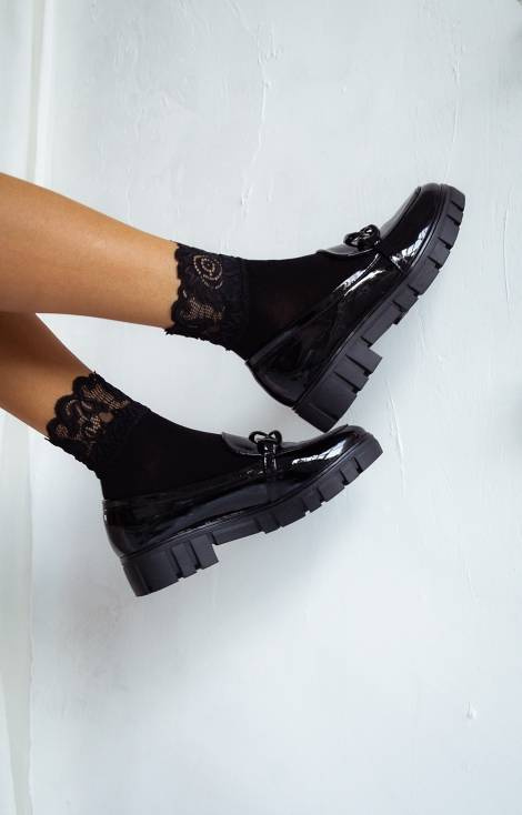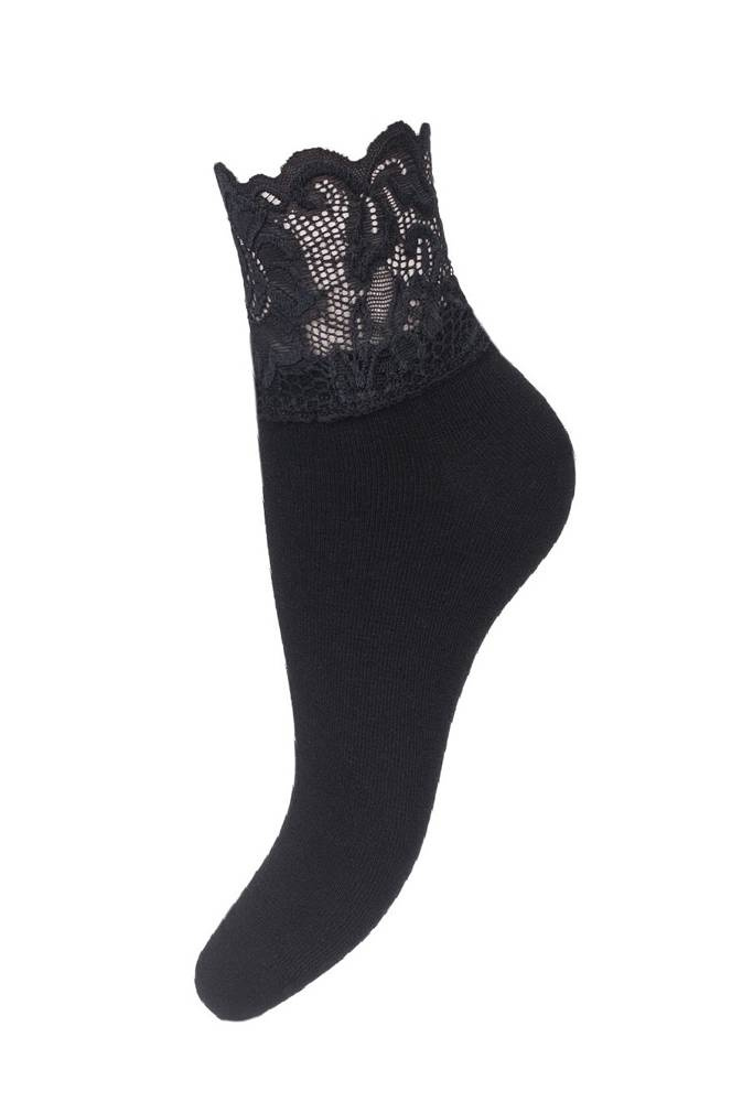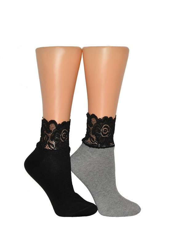 Eleganckie bawełniane skarpetki damskie ozdobione szeroką koronką. Skarpetki w jednym rozmiarze 37-41, dostępne również w kolorach jasny i ciemny melanż. Skład: 75% bawełna, 20% poliamid, 5% elastan.