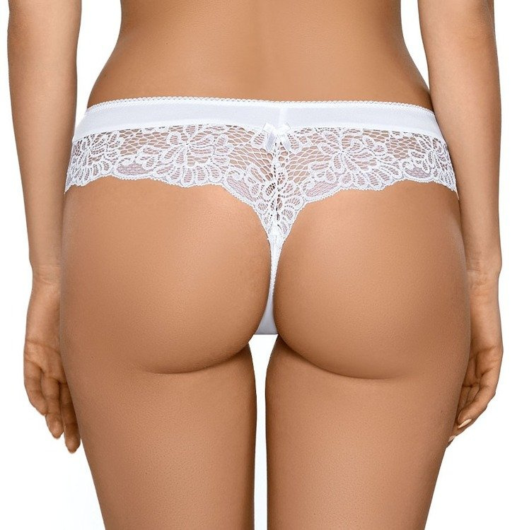 Stringi damskie z delikatnej mikrofibry w połączeniu z koronką o kwiatowym motywie.