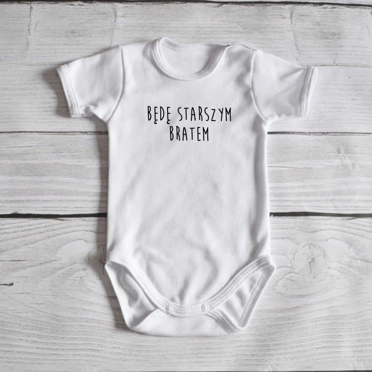 Body krótki rękaw "Będę starszym bratem " Moocha białe