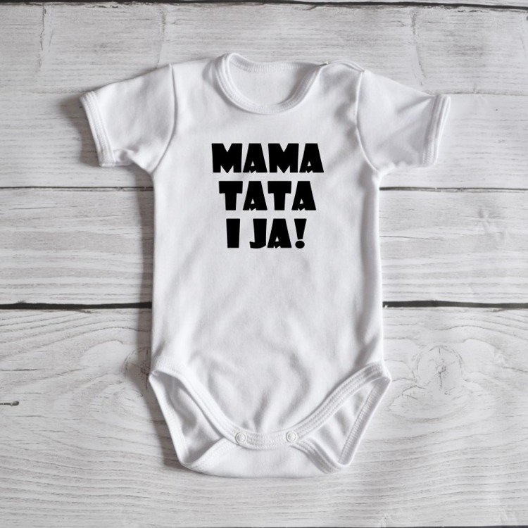 Body krótki rękaw "Mama, tata i ja" Moocha białe