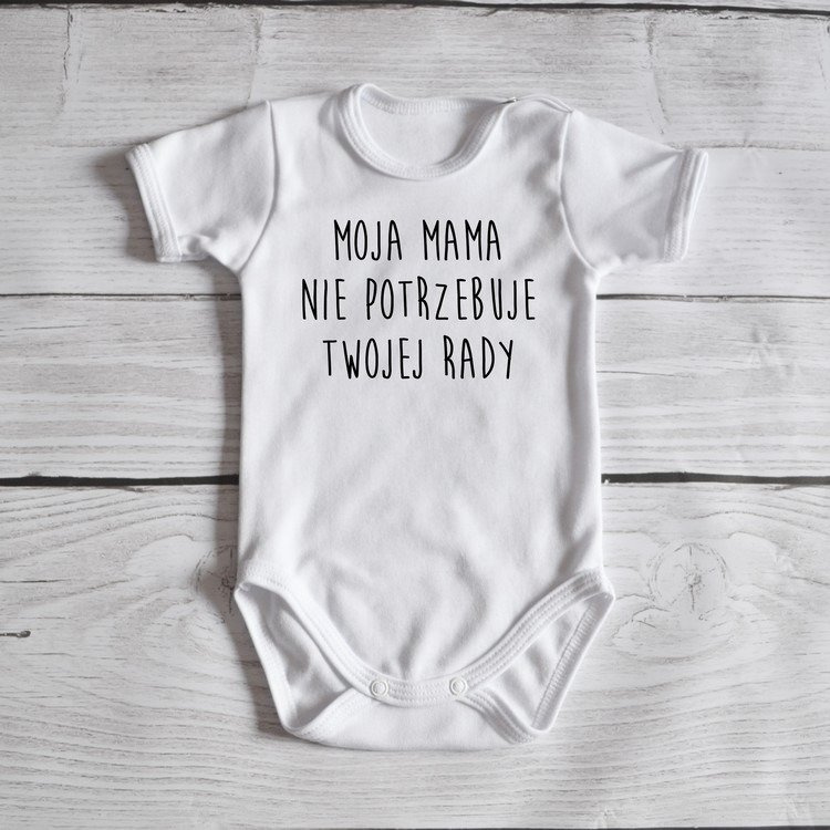 Body krótki rękaw "Moja mama nie potrzebuje twojej rady" Moocha białe