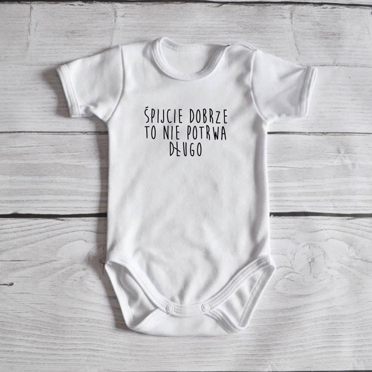Body krótki rękaw "Śpijcie dobrze, to nie potrwa długo" Moocha białe