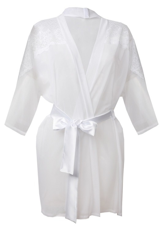 Niezwykle seksowny szlafrok dla każdej wyjątkowej kobiety która nie boi się seksapilu. Uszyta z delikatnego tiulu, ozdobiony przód delikatną koronką. Praktyczny delikatny satynowy pasek idealnie dopasowuje się do sylwetki, uwydatniając atuty kobiecego ciała.