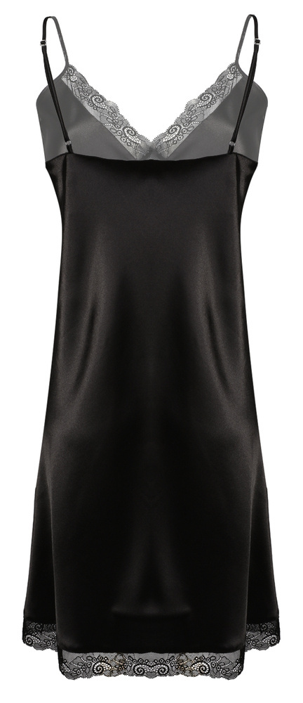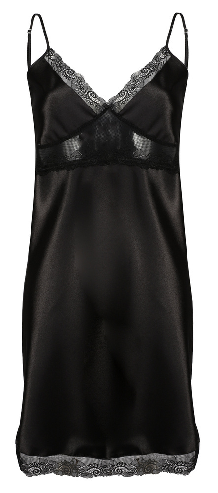 Miseczki halki uszyte z satyny obszyte koronką oraz koronka pod biustem. Reszta haleczki uszyta z zwiewnej satyny. Dół wykończony koronką. Ramiączka cienkie regulowane.
