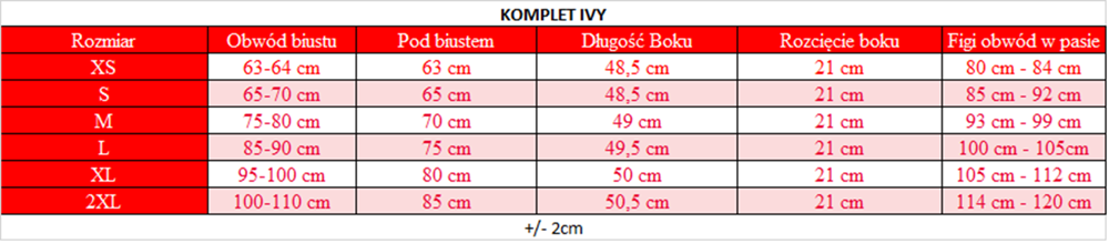 Rozmiar | Obwód klatki piersiowej | Obwód bioder |