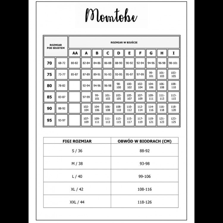 | Rozmiar | Obwód pod biustem | Obwód w biuście |