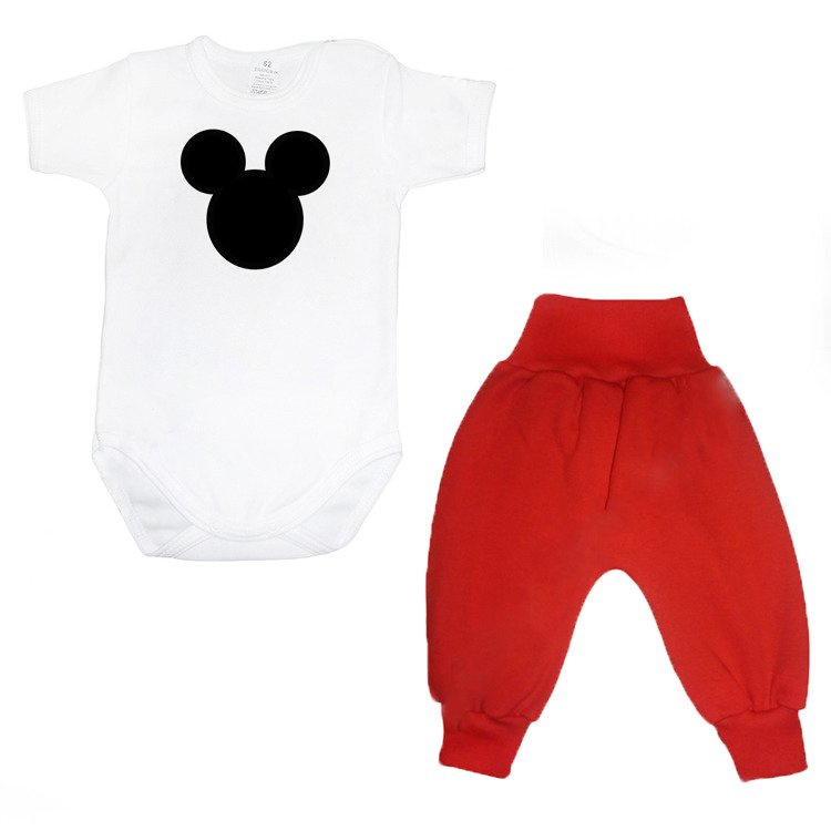 Zestaw body krótki rękaw białe+spodenki "Miki" Moocha czerwony