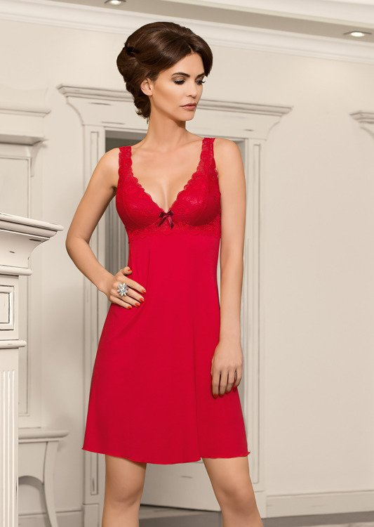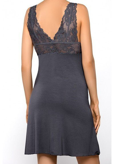 W górnej linii i pod biustem znajduje się ażurowa koronka. Natomiast na łączeniu miseczek satynowa kokardka. Biust delikatnie usztywniony. Szerokie ramiączka bez regulacji.