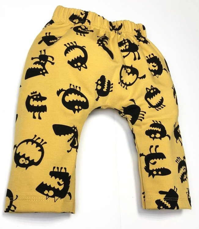 Fantastyczne spodnie ozdobione nadrukiem potworków. Posiadają szerokie ściągacze w pasie sprawiające, że ubranko jest bardzo wygodne w użytkowaniu. Spodnie doskonale sprawdzą się w tworzeniu wyjątkowych dziecięcych stylizacji.
