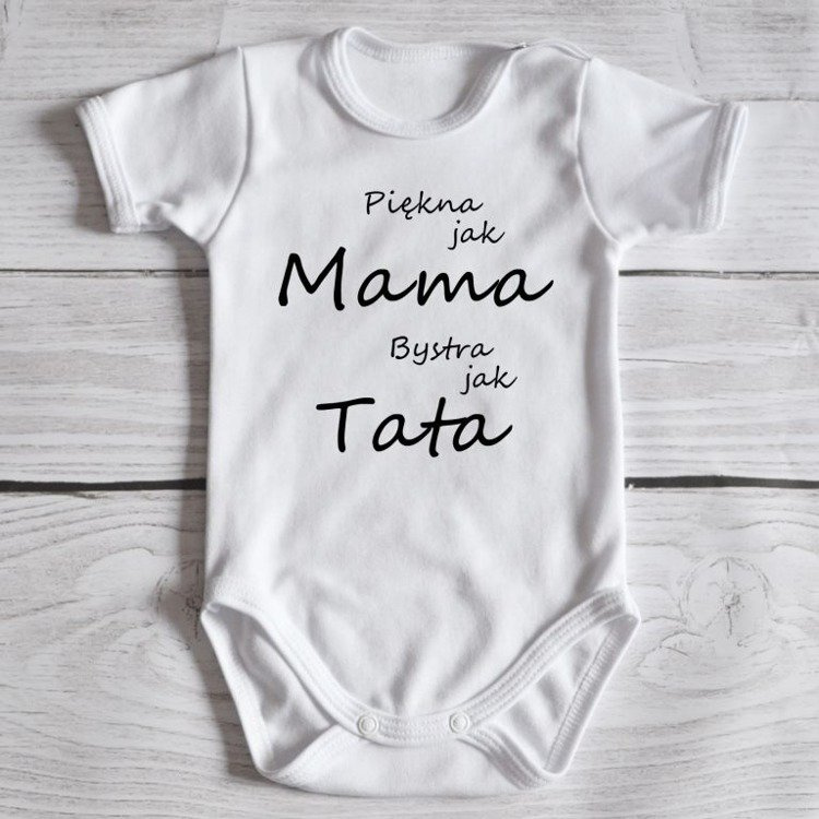 Body krótki rękaw "Piękna jak mama bystra jak tata" Moocha czarne