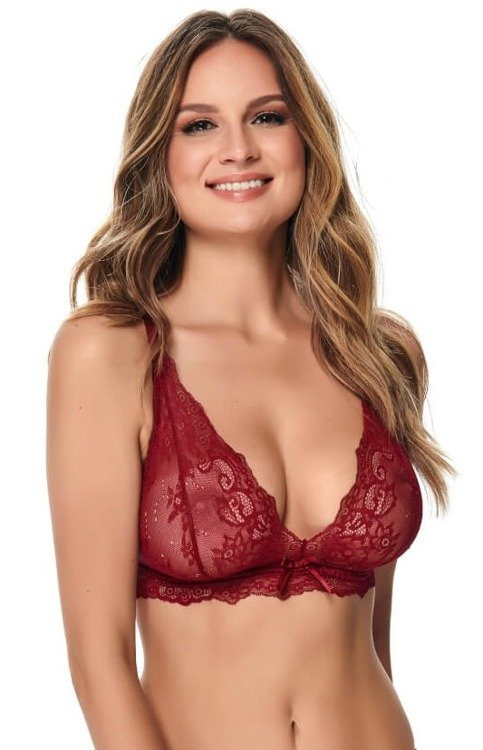 Braletka w kolorze bordowym, całkowicie wykonana z elastycznej koronki.