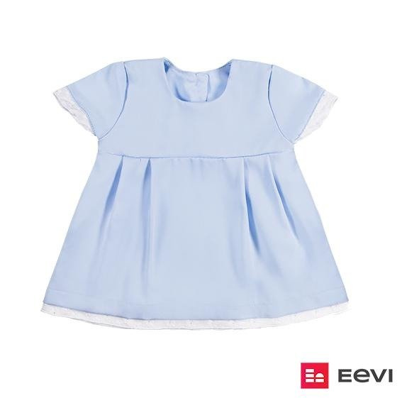 Sukienka dziewczęca z kolekcji "Ceremony" wykonana z miękkiej i przyjemnej w dotyku niebieskiej tkaniny. Przy rękawkach oraz na dole sukienki doszyta biała ażurowa koronka. Z tyłu znajduje się zapięcie na guziczki. Elementem ozdobnym jest mocowana z przodu złota zawieszka z misiem.