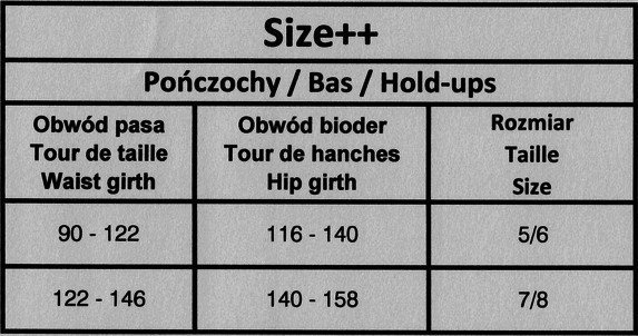Pończochy samonośne Size ++ z niezwykle elastycznej przędzy, która pozwala na wytworzenie produktu, dla dużych objętości w udzie. Z kolekcji stworzonej dla kobiet o okrągłych kształtach, pragnącej czuć się swobodnie i zmysłowo każdego dnia.