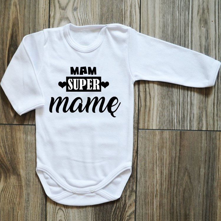 Body długi rękaw "mam SUPER mamę" Moocha białe