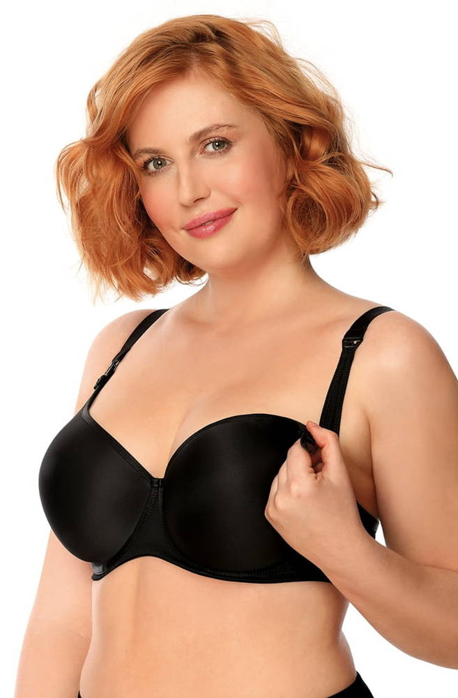 Biustonosz usztywniany dla kobiety w ciąży i mamy karmiącej z gładkiej mikrofibry, boczki z elastycznej dzianiny. Ramiączka odpinane typu Quick Clic umożliwiające odpinanie i zapinanie miseczek jedną ręką, co jest udogodnieniem podczas karmienia dziecka.
