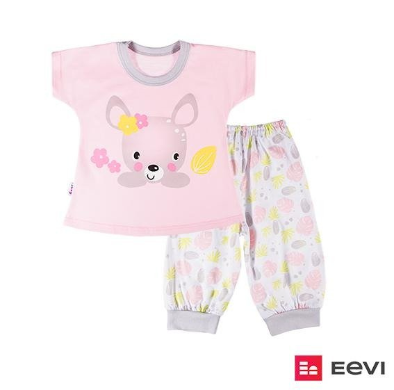 Piżamka letnia dziewczęca z kolekcji "Family" uszyta z miękkiej i przyjemnej w dotyku dzianiny w trzech wariantach kolorystycznych przełamanych drukami, wykonanymi farbami ekologicznymi. Bluzeczka przy szyjce i rękawkach zakończona miękkimi lamówkami. Spodenki posiadają w pasie gumę nie uwierającą brzuszka dziecka. Nogawki również zakończone ściągaczem. Kolorowe nadruki na przodzie piżamki wykonane są farbami bezpiecznymi dla dzieci.