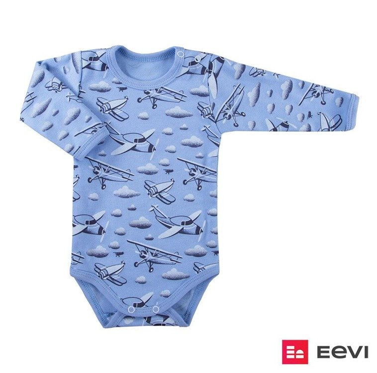 Body chłopięc z długim rękawem z kolekcji "Sky" uszyte z miękkiej i przyjemnej w dotyku dzianiny. Druki wykonane są farbami ekologicznymi. Krój umożliwia całkowite rozpięcie, przez co ubranko jest funkcjonalne i wygodne.