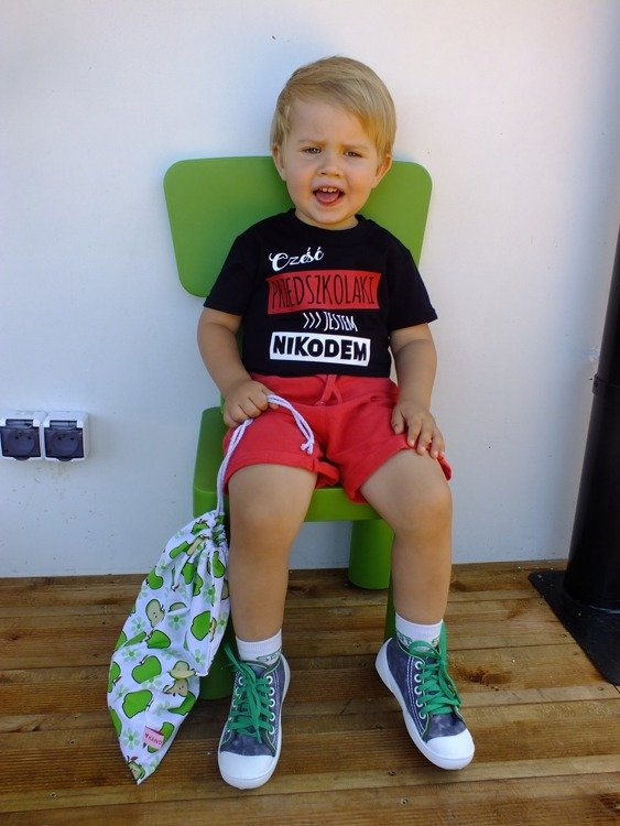 Koszulka dziecięca krótki rękaw "Cześć PRZEDSZKOLAKI z imieniem" Moocha czarny