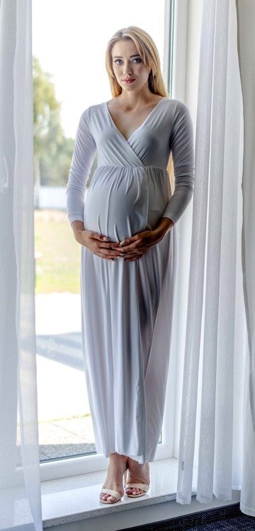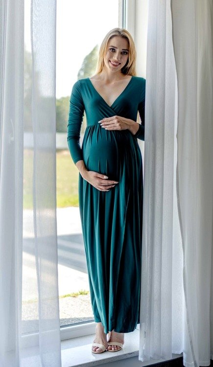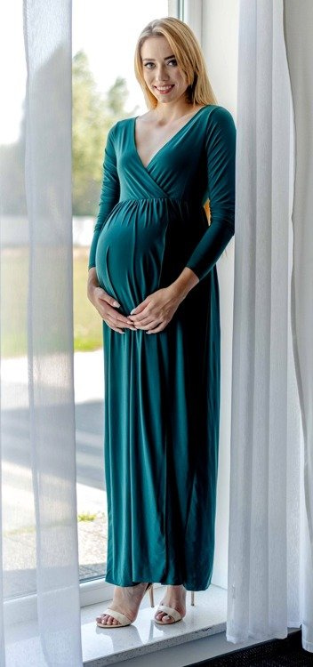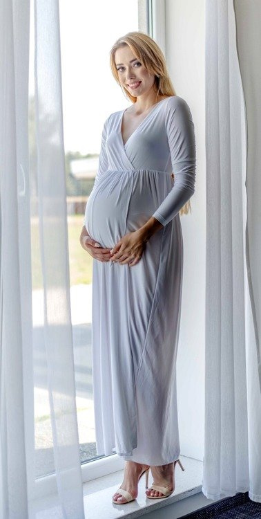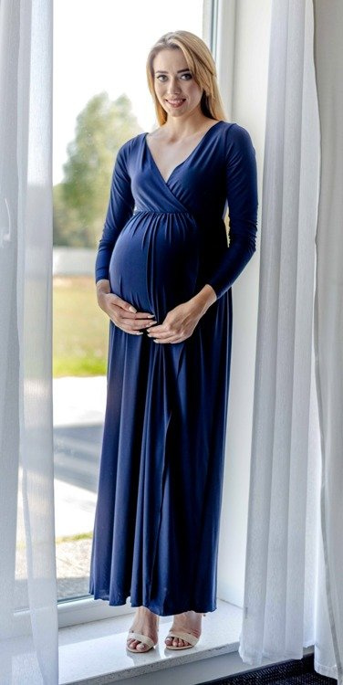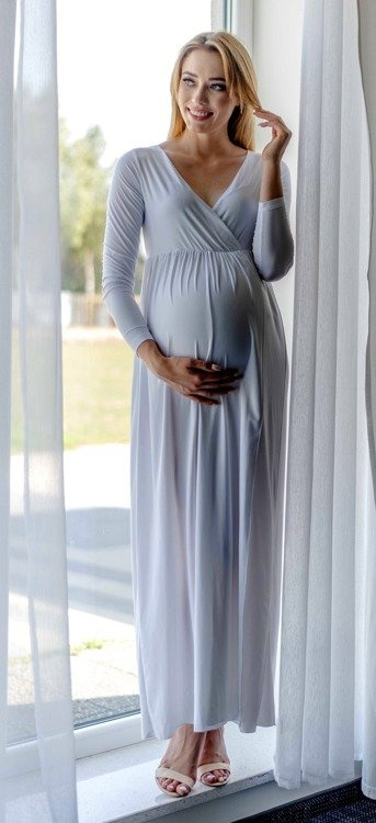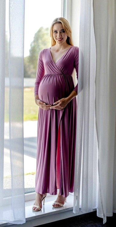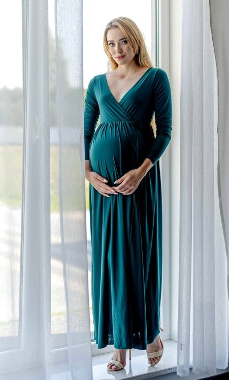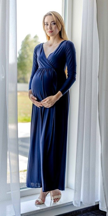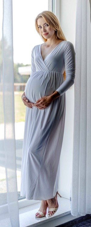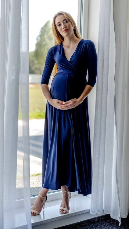 Elastyczna dzianina doskonale dopasowuje się do kobiecych kształtów. Sprawdzi się zarówno na ciążowe sesje zdjęciowe, przyjęcia , bankiety, kolacje rodzinne  oraz do pracy.