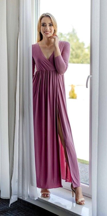 111 Sukienka maxi z rękawem 3/4 MIRACLE- brudny róż