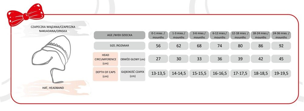 Mięciutka, opaska to efektowna ozdoba dziecięcej główki. Służyć może również jako alternatywa dla letniej czapeczki. Elementem rozpoznawalnym ubranka jest elegancki, a zarazem bardzo dziewczęcy, supełek na środku. Doskonale komponuje się z pozostałymi ubrankami z kolekcji Cherry.