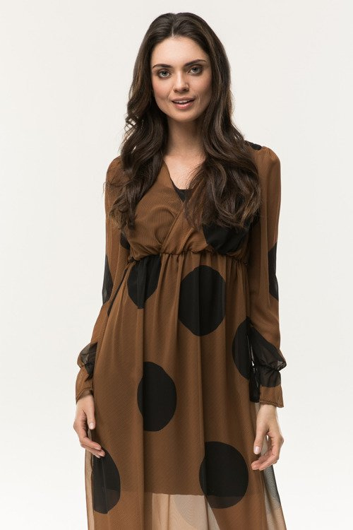 Niezwykle kobieca sukienka w ponadczasowy wzór paisley, w stylu boho. Miękko układa się na sylwetce. Ozdobna falbanka przy rękawach dodaje uroku. Sukienka została zaprojektowana specjalnie dla kobiet w ciąży oraz kobiet karmiących piersią. Ukryty panel umożliwia w wygodny i dyskretny sposób nakarmić maluszka.