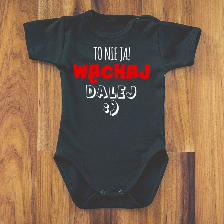 Body krótki rękaw "To nie ja WĄCHAJ dalej" Moocha białe