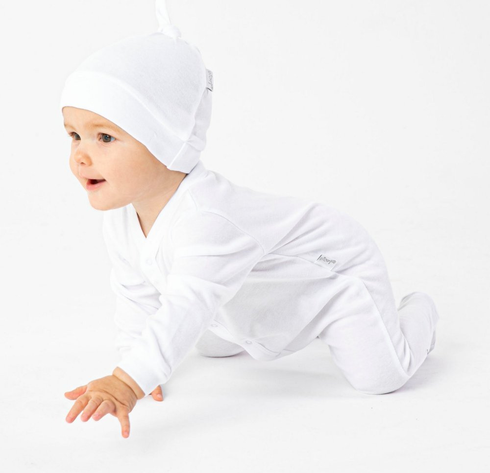Bawełniany, gładki, jednolity pajacyk. Możliwość całkowitego rozpięcia umożliwia łatwe i szybkie ubieranie dziecka. Dodatkowy klin w kroku i stopery nad pietami zapewniają swobodę użytkowania i nie krepują ruchów dziecka.