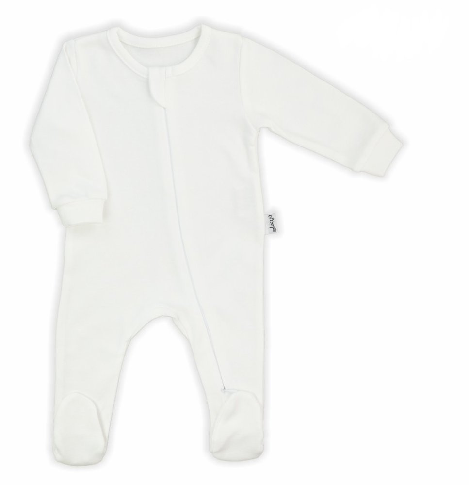 Bawełniany, gładki, jednolity pajacyk. Możliwość całkowitego rozpięcia umożliwia łatwe i szybkie ubieranie dziecka. Dodatkowy klin w kroku i stopery nad pietami zapewniają swobodę użytkowania i nie krepują ruchów dziecka.