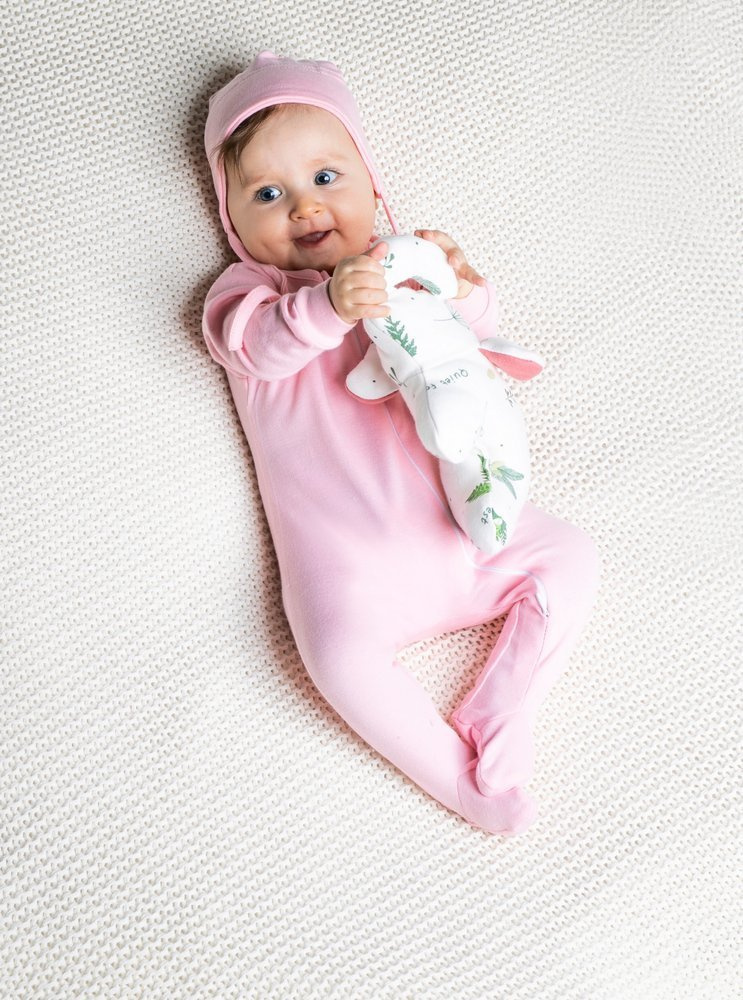 Bawełniany, gładki, jednolity pajacyk. Możliwość całkowitego rozpięcia umożliwia łatwe i szybkie ubieranie dziecka. Dodatkowy klin w kroku i stopery nad pietami zapewniają swobodę użytkowania i nie krepują ruchów dziecka.