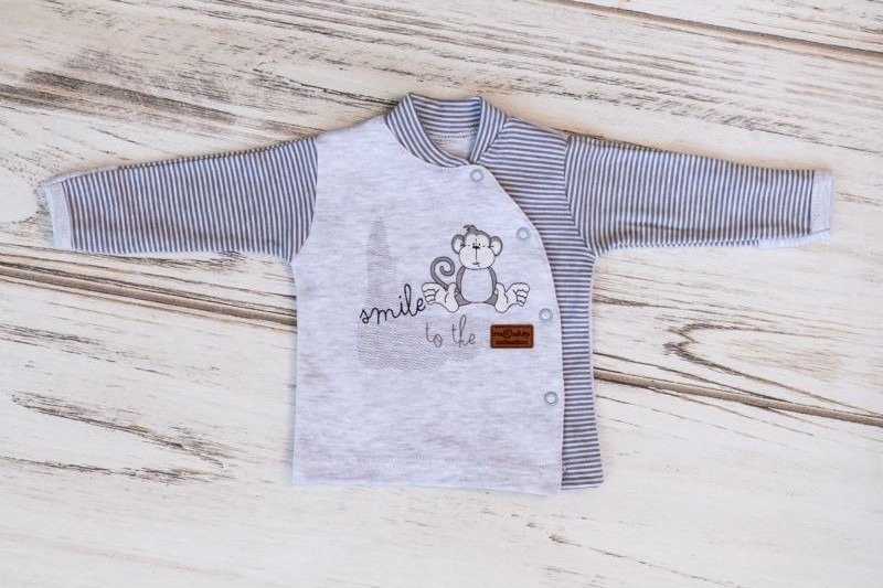 Kaftanik Monkey dzięki swojej prostocie i delikatności daje wrażenie radosnej lekkości. Wykonany został ze 100% bawełny, dzięki czemu gwarantuje najwyższy komfort noszenia. Jego kopertowy krój ułatwia ubieranie maluszka, a najwyższej jakości materiał gwarantuje wygodę i swobodne ruchy niemowlaka oraz odpowiednią termoregulację.