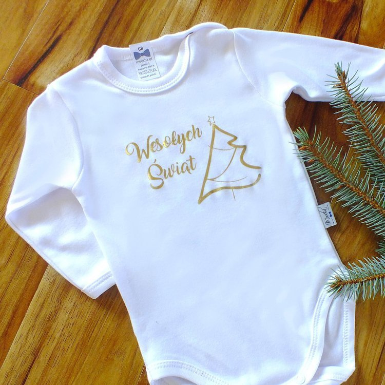Body długi rękaw "Wesołych Świąt z choinką" Moocha biały