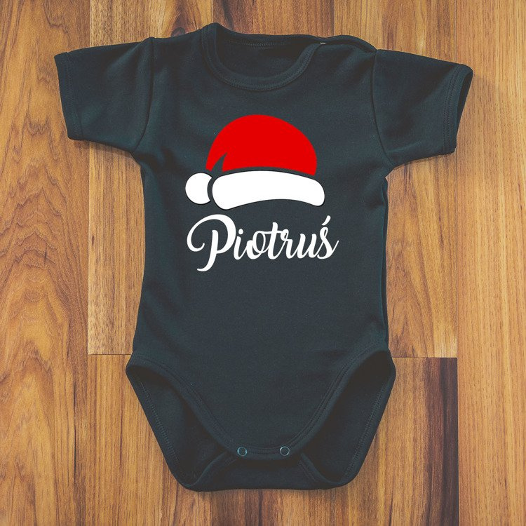 Body krótki rękaw "Czapka Mikołaja z imieniem" Moocha biały