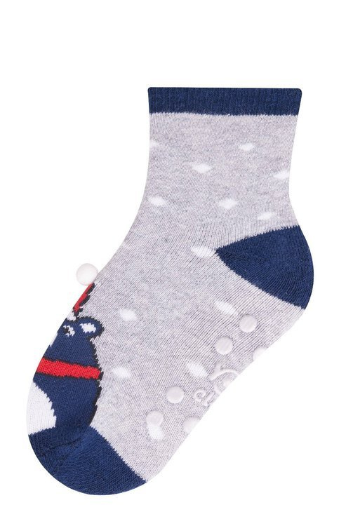 Bawełniane skarpety dziecięce ze świątecznymi motywami.Posiadają stopę z ABS-em. Od środka wykończone ciepłą frotą.