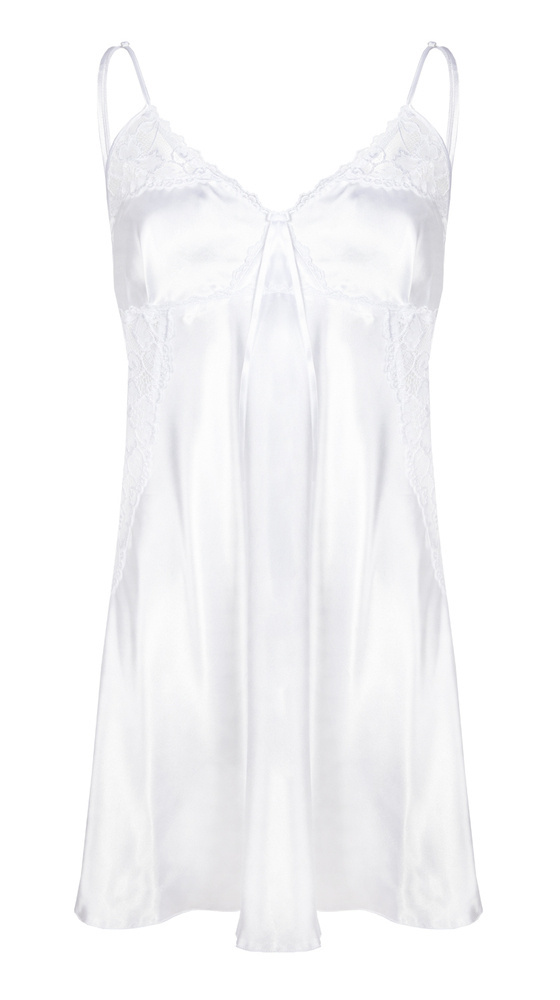 Zmysłowa satynowa haleczka, przód halki tworzą profilowane miski ozdobione śliczną koronką.