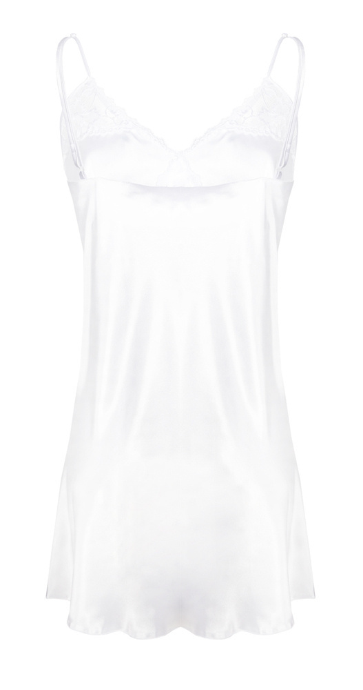Ramiączka cienkie i regulowane dzięki którym można uzyskać odpowiednio odkryty dekolt. Boki hali przyozdobione są delikatną czarną koronką. Halkę wykonano z najwyższej jakości delikatnej szlachetnej satyny.
