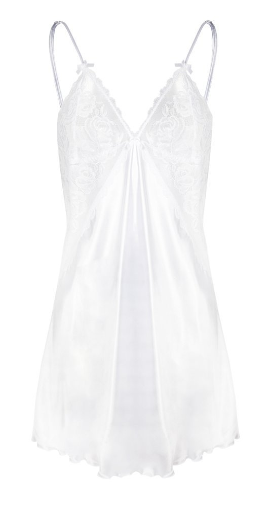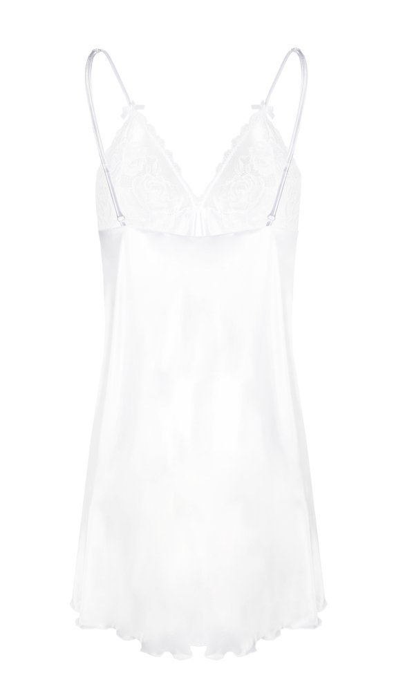 Zwiewny dotyk satyny utuli Cię do snu. Haleczka wykonana z satyny natomiast góra koszulki wykończona koronką w róże.