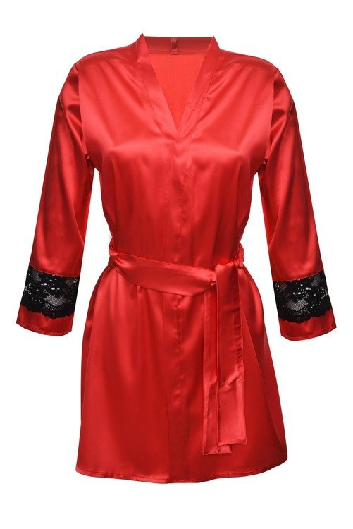 Satynowa zwiewna podomka z prostymi rękawami oraz satynowym paskiem, który seksownie podkreśli talię. Podomkę zdobi przecinająca rękawki delikatna w dotyku efektowna koronka.