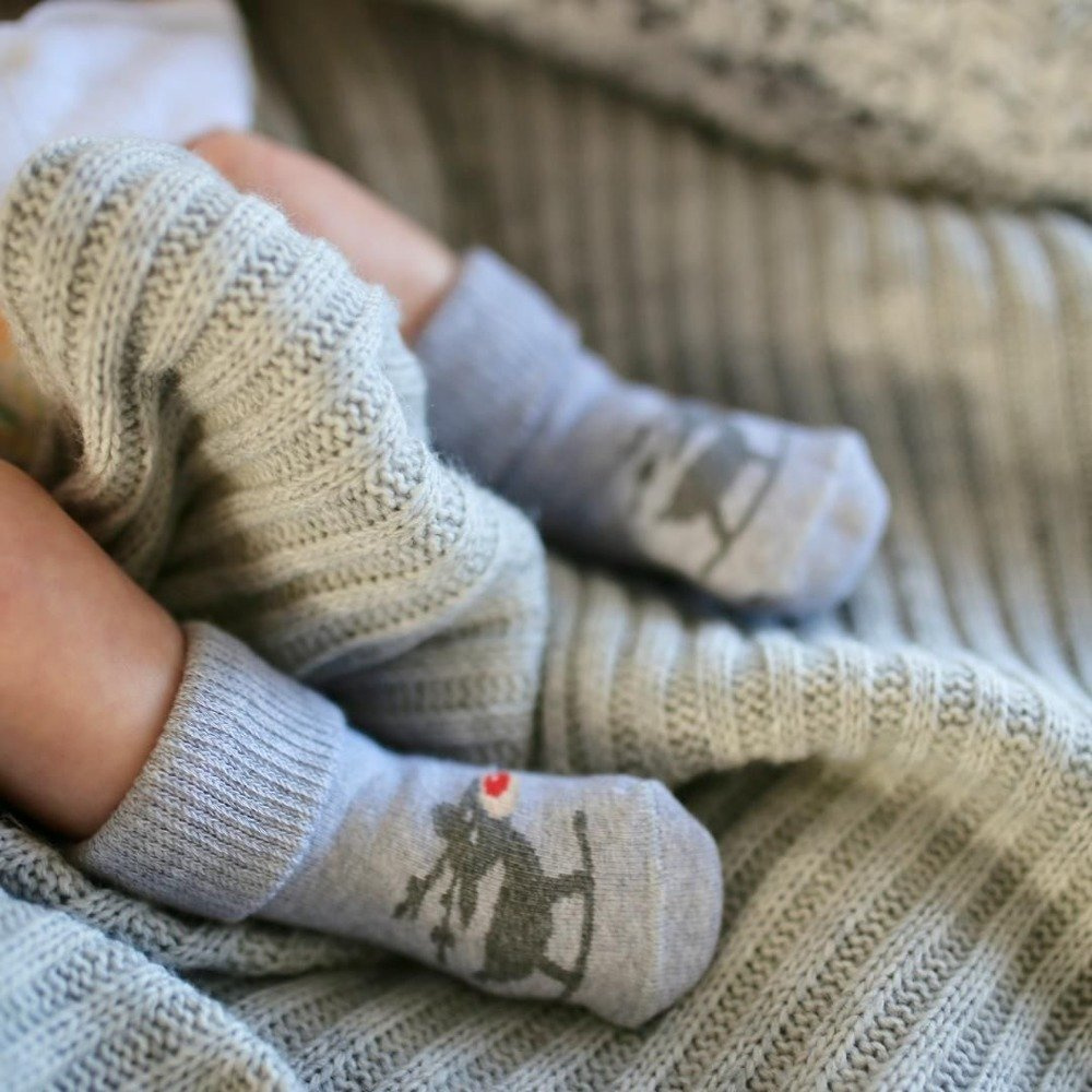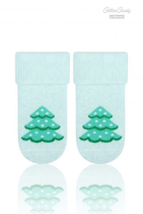 Bawełniane dziecięce skarpety frotte z wywinięty ściągaczem o tematyce świątecznej.