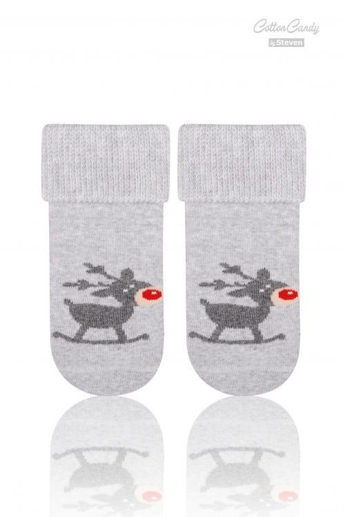 Art.156 Skarpety dziecięce Świąteczne Frotte Steven szary jasny melanż/renifer 002