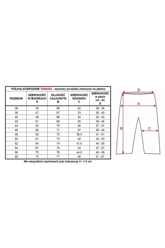 Wygodne półhalkospodnie, przeznaczone dla kobiet, które zawsze chcą się czuć pewnie i komfortowo. Półhalkospodnie Tamara to model podobny do Anastazji, tylko o węższych nogawkach. Nadają się pod każdego rodzaju sukienki, spódnice, ale także i spodnie.Tamara została wykonana z jedwabiu wiskozowego.