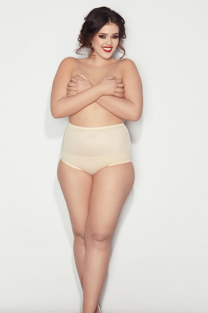 Figi korygujące, wykonane z mocnej dzianiny poliamidowa tworzącej z przodu i z tyłu pas modelujący brzuch oraz biodra. W celu zwiększenia komfortu noszenia dół modelu wykonano z bawełny.