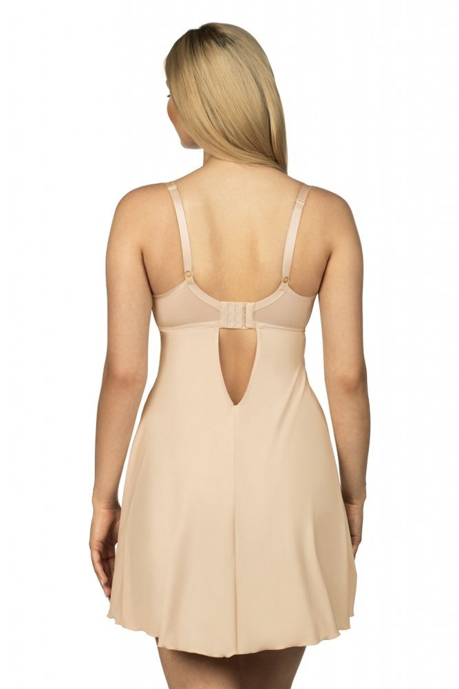 Piękna koszulka polecana dla kobiet o pełniejszych kształtach i dużym biuście. Krój koszulki lekko rozkloszowany dzięki czemu świetnie zakrywa okrąglejsze kształty. Wykonany z elastycznej mikrofibry i koronki. Miseczki na fiszbinach zbierają, modelują i świetnie utrzymują biust. Krój koszulki lekko rozkloszowany dzięki czemu świetnie zakrywa okrąglejsze kształty. Koszulka na grubszych regulowanych ramiączkach wzmocnionych gipiurą. Idealny model dla Pań lubiących szyk i poczucie luksusu.