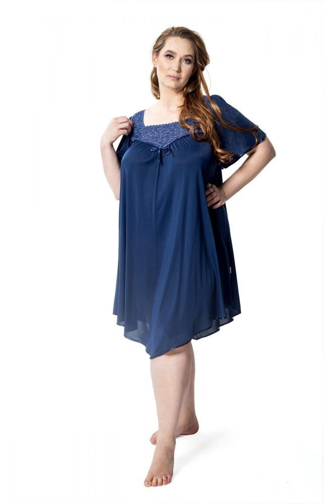 Koszula zdobiona koronkowym karczkiem i satynowymi obszyciami, które podkreślają elegancję, a zarazem prostotę tej koszuli. Wspaniała koszula nocna, w której na pewno poczujesz się modnie i elegancko.