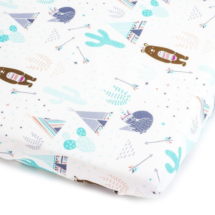 Prześcieradło można skompletować z pościelą i ochraniaczem do łóżeczka, a także z innymi produktami marki Makaszka.