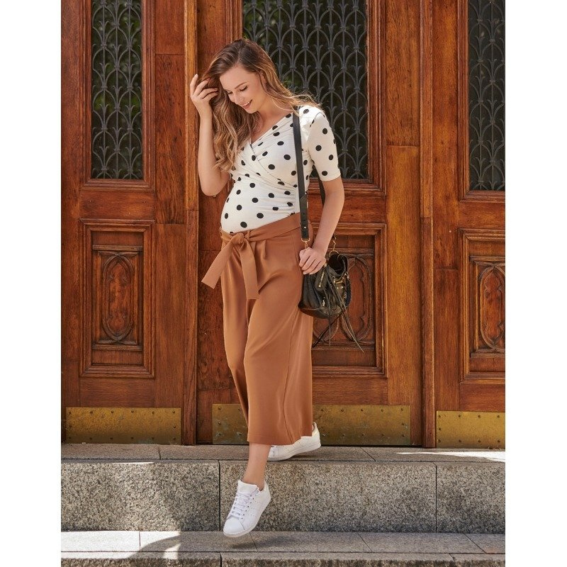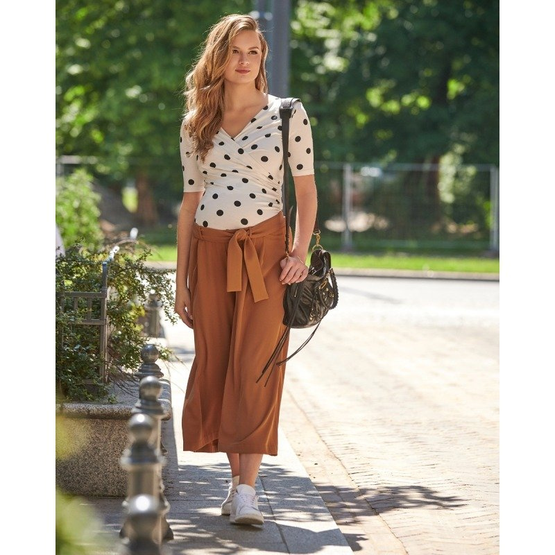 Bluzka posiada marszczony kopertowy dekolt, który ułatwi karmienie w komfortowych warunkach.