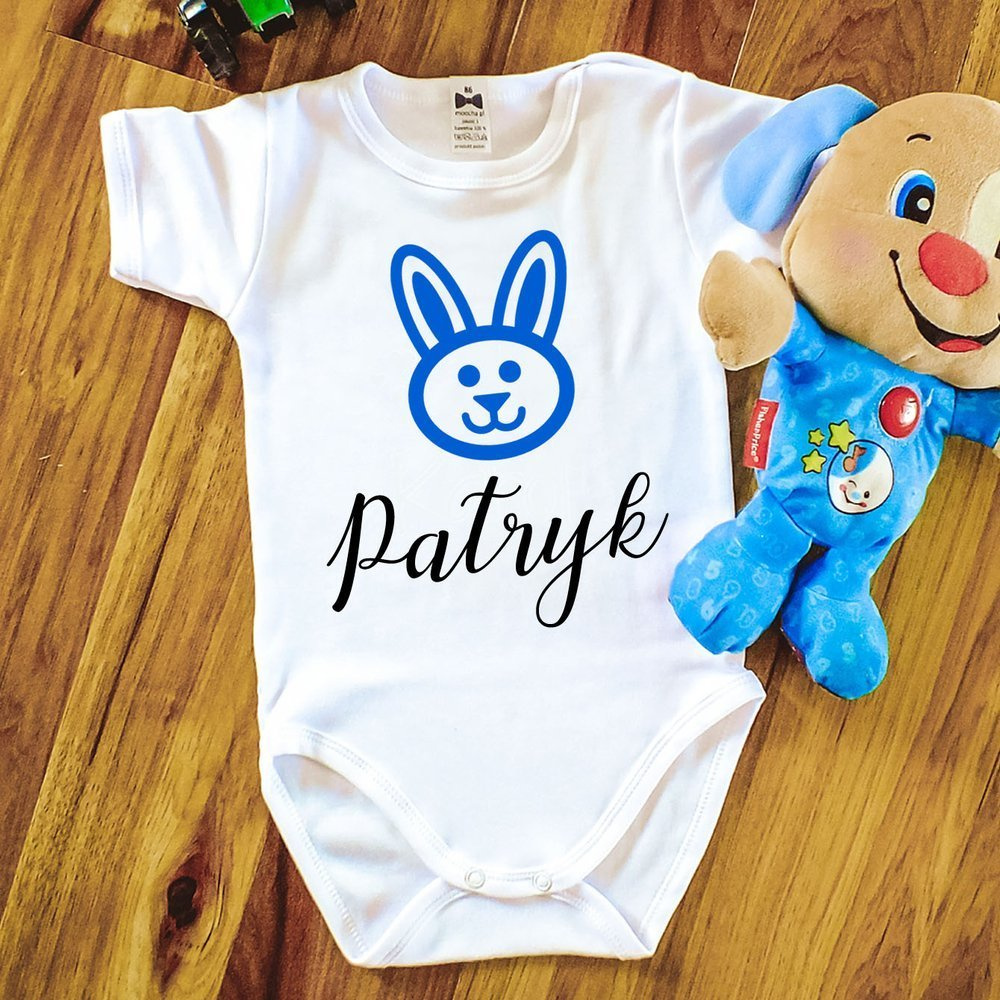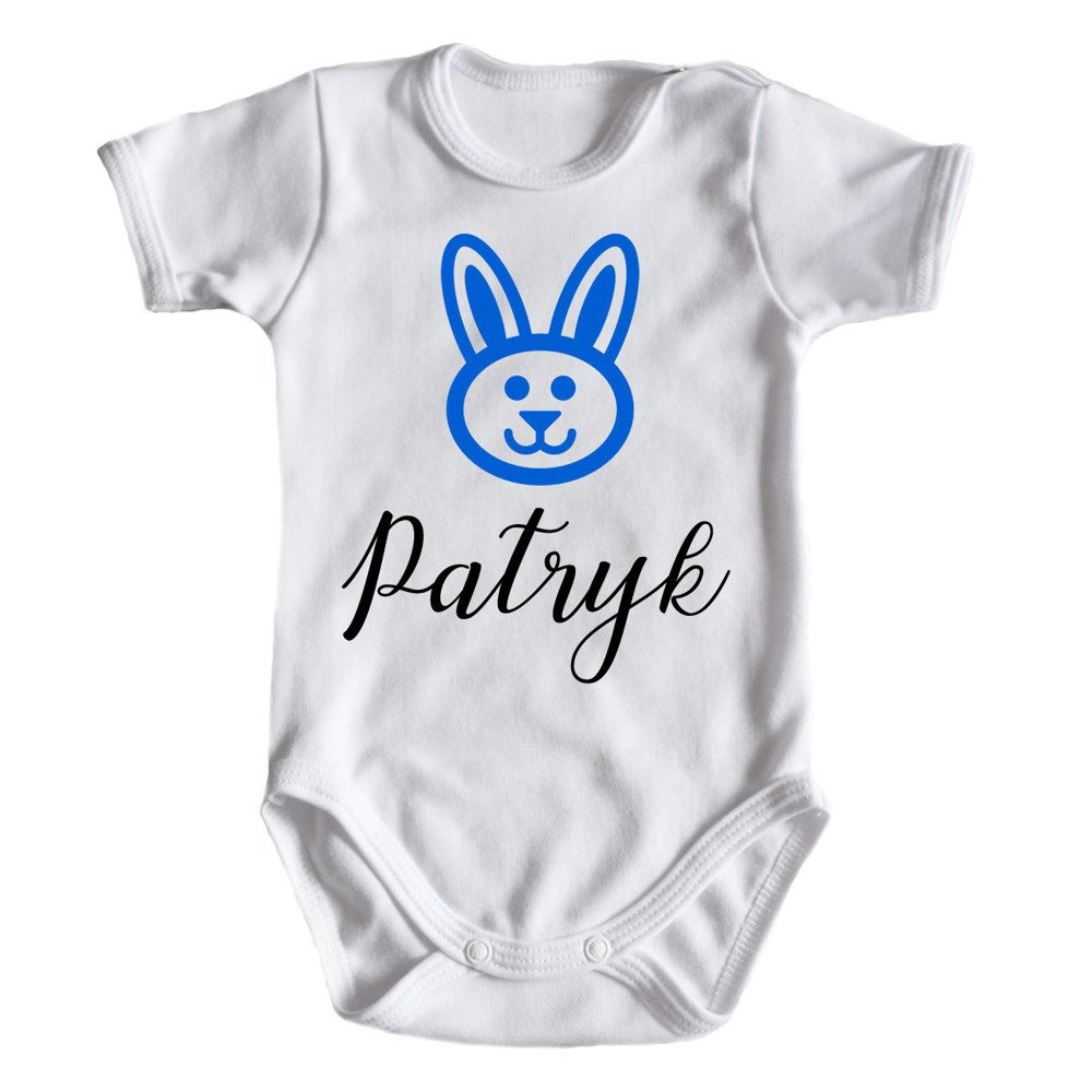 "Wielkanoc z imieniem niebieskie" body krótki rękaw Moocha białe