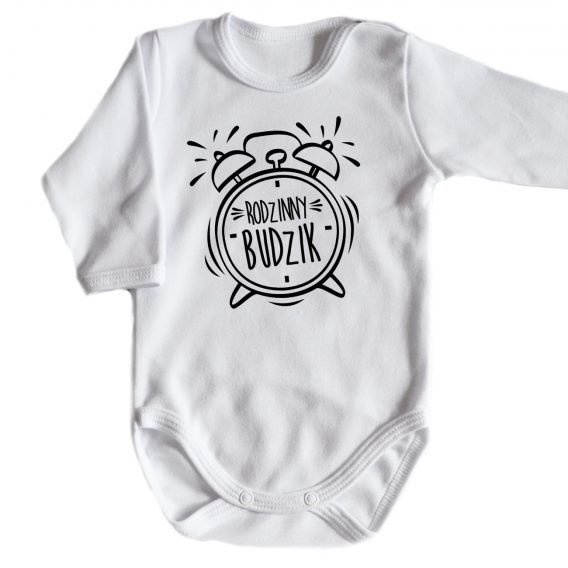 "Budzik rodzinny" body długi rękaw Moocha biały