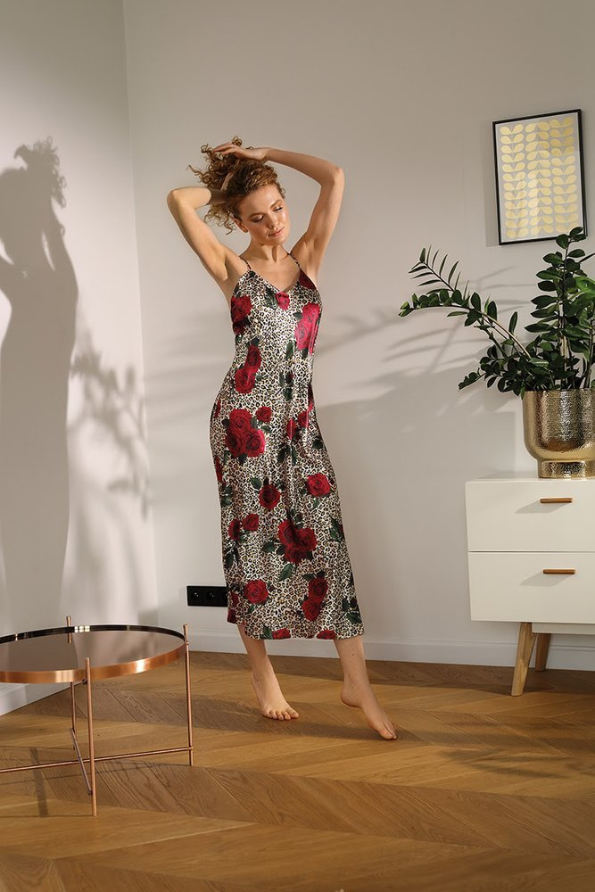 Elegancka, a zarazem klasyczna halka uszyta z drukowanej wzorzystej satyny.Dekolt tworzy literę „V” co sprawia że koszulka nadaje nam seksapilu.