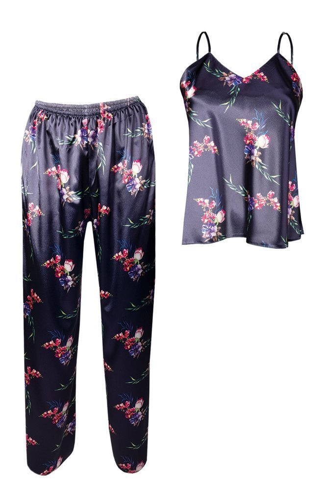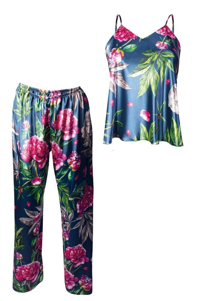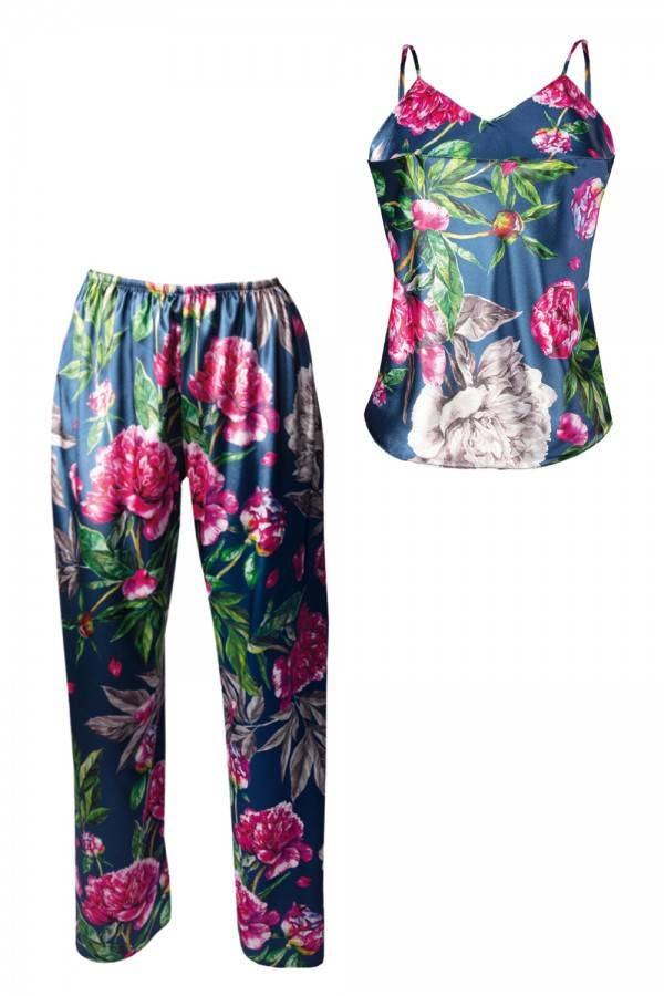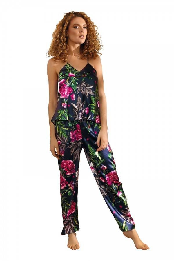 Piżama Damska Satynowa Flowers DKaren - DK-KI 1 granatowy
